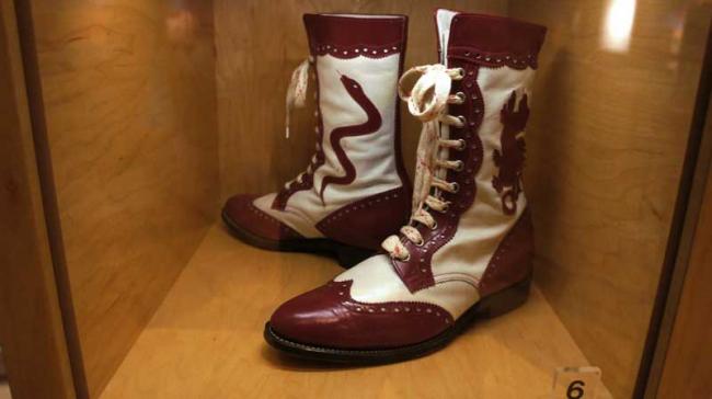 Among the collection’s most popular features is an extensive assortment of celebrity footwear, including Queen Victoria’s ballroom slippers, Robert Redford’s cowboy boots, Elton John’s monogrammed silver platform boots, Terry Fox’s running shoe, Elvis Presley’s blue patent loafers, Karen Kain’s ballet shoes and John Lennon’s Beatle boot.