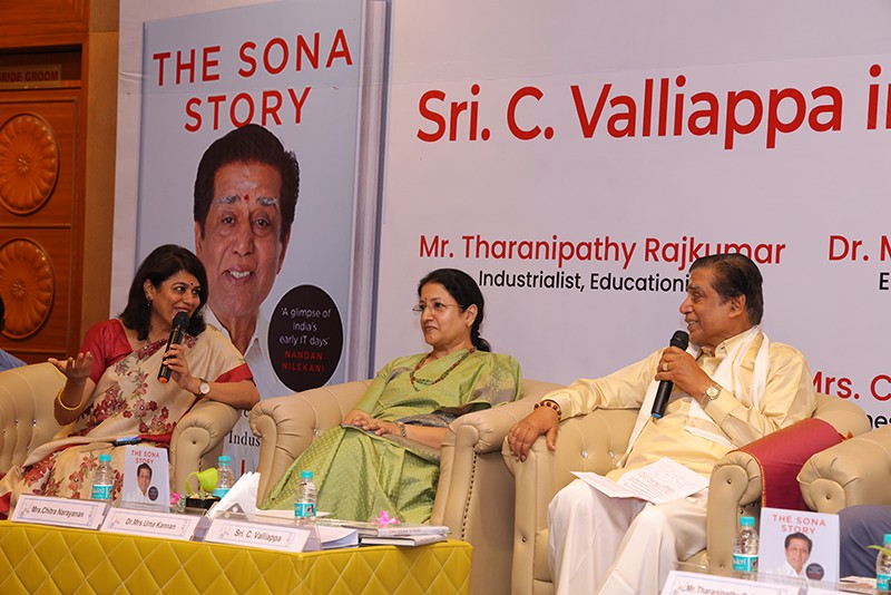 Salem: An audience of over 150 educationists, entrepreneurs, and well-wishers from the steel city Salem, as well as Coimbatore sat with rapt attention as C. Valliappa, the protagonist of ‘The Sona Story’ shared deeply personal and candid reflections at the launch of The Sona Story: The Textile to Tech Journey of a Chettiar Industrialist C. Valliappa, authored by journalist Chitra Narayanan and published by Bloomsbury India.