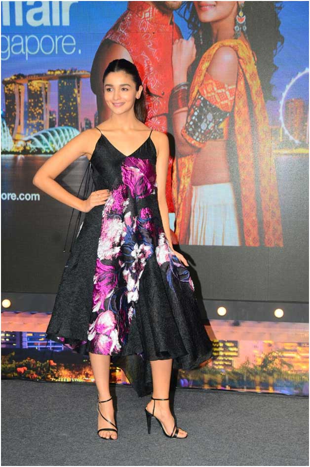 The 23-year-old is quite a pro when it comes to accessorizing. At one of the promotional events of her film, the pretty maiden sported not one, but two rose gold rings. Making a striking combo with her vibrant dress, the Bollywood babe made quite an elegant statement. Black apparel with rose gold make an unconventional pair. But the lady pulled it off with élan. The pencil heels further accentuated the look.