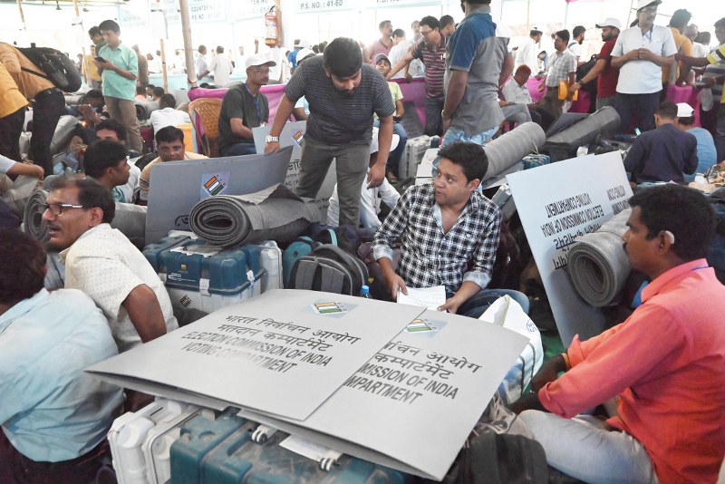 In image polling officers preparing EVMs for third phase/courtesy: PIB
