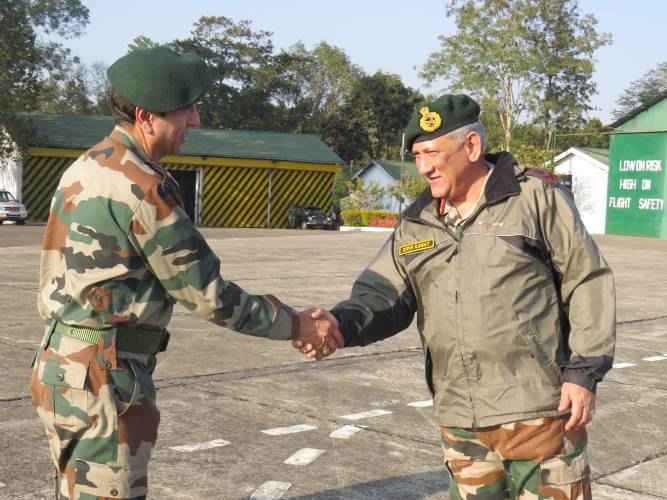 Guwahati, Feb 3 (IBNS): General Bipin Rawat, Chief of the Army Staff, arrived on a two-day visit at Rangapahar Military Station on Saturday, to review operational preparedness of army formations in the region.