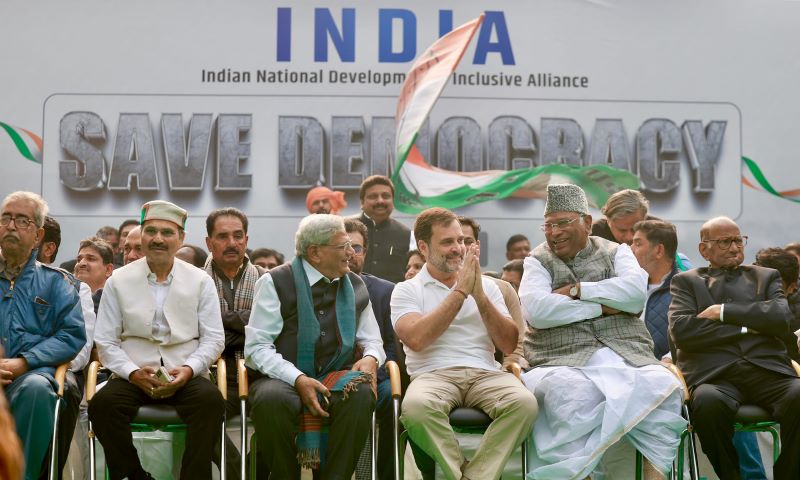 New Delhi/IBNS: The Indian National Developmental Inclusive Alliance (INDIA) bloc, comprising a clutch of parties opposed to the ruling Bharatiya Janata Party (BJP), Friday held a protest at Jantar Mantar in Delhi against the suspension of MPs from both Houses of Parliament during the winter session.