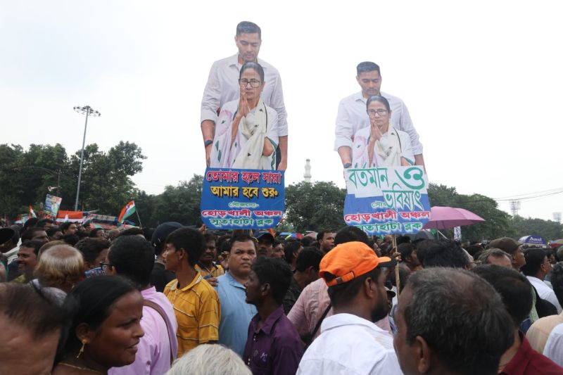 Mamata, who heads the TMC, was joined by her top party leaders, including her nephew Abhishek Banerjee, at the annual event that is organised primarily to pay tributes to the 13 people who died in a police firing in Kolkata in 1993 during an agitation against the Left Front government.