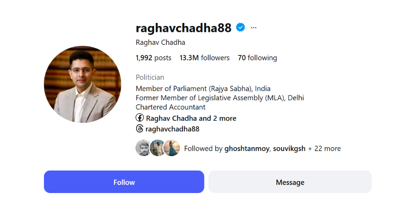 Politician Raghav Chadha’s decision to switch from the Aam Aadmi Party (AAP) to the Bharatiya Janata Party (BJP) appears to have sparked a strong backlash among Gen Z, with reports claiming he lost nearly 10 lakh Instagram followers within just 24 hours.