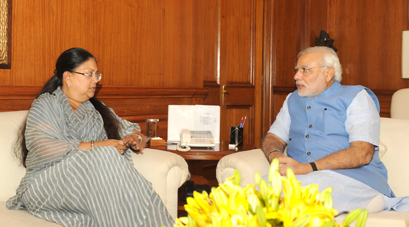 "The Chief Minister of Rajasthan, Smt. Vasundhara Raje, called on the Prime Minister, Shri Narendra Modi, today. It was a courtesy call," the Prime Minister's Office said in a statement.