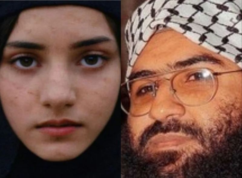 Afira Bibi (L) & JeM chief Madood Azhar (R). Photo: Viral X post/Wikimedia Commons.