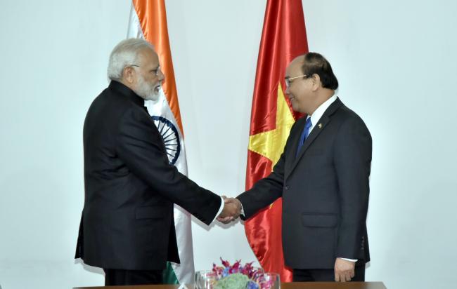 The Prime Minister, Narendra Modi meeting the Prime Minister of Socialist Republic of Vietnam, Nguyen Xuan Phuc, in Manila, Philippines on November 14, 2017.