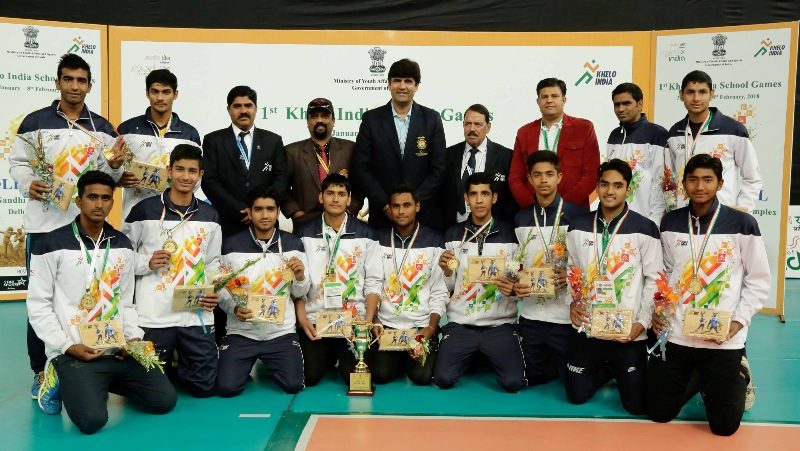Delhi Volleyball Boys team won the Gold Medal, at the 1st Khelo India School Games, in New Delhi on February 05, 2018.