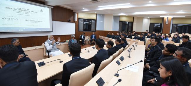 The Prime Minister, Narendra Modi interacting with the Officer Trainees of the 92nd Foundation Course, at the Lal Bahadur Shastri National Academy of Administration (LBSNAA), in Mussoorie, Uttarakhand on October 26, 2017.