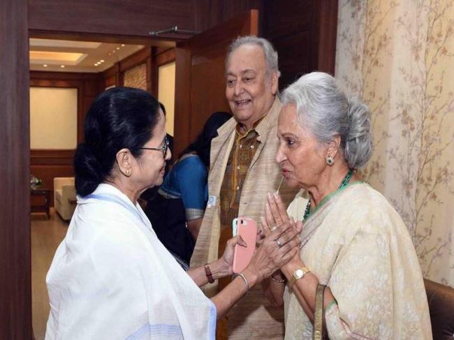 Waheeda Rehman with Mamata Banerjee and Soumitra Chatterjee