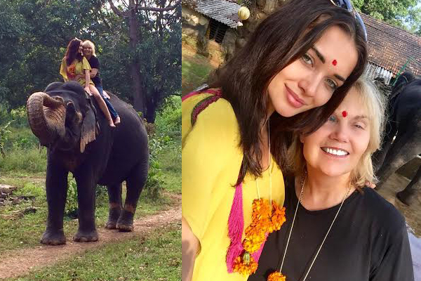 Amy Jackson celebrates Diwali at the elephant rehabilitation in Kerala