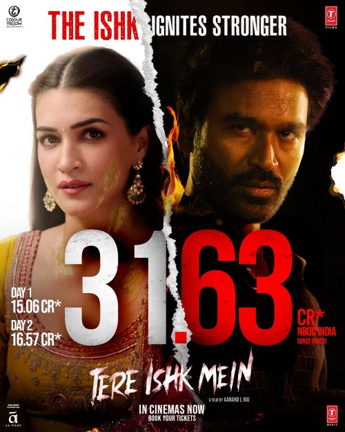Mumbai/IBNS: The Dhanush and Kriti Sanon starrer Tere Ishq Mein continued its strong performance at the box office on its second day, extending its impressive opening weekend collection.