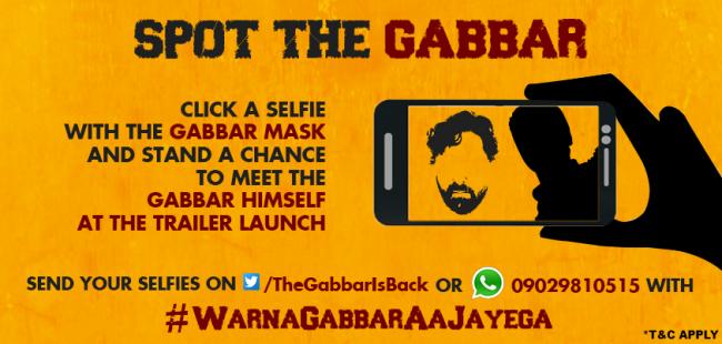 Fans that messaged on the Whatsapp number were asked to send a selfie with the Gabbar mask in order to win a chance to meet the Khiladi of Bollywood ‘Akshay Kumar’ at the film’s grand trailer launch next week.