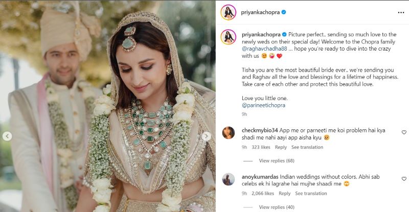 Sharing cozy pictures from the wedding event, PC poured her love and blessings upon the couple.
