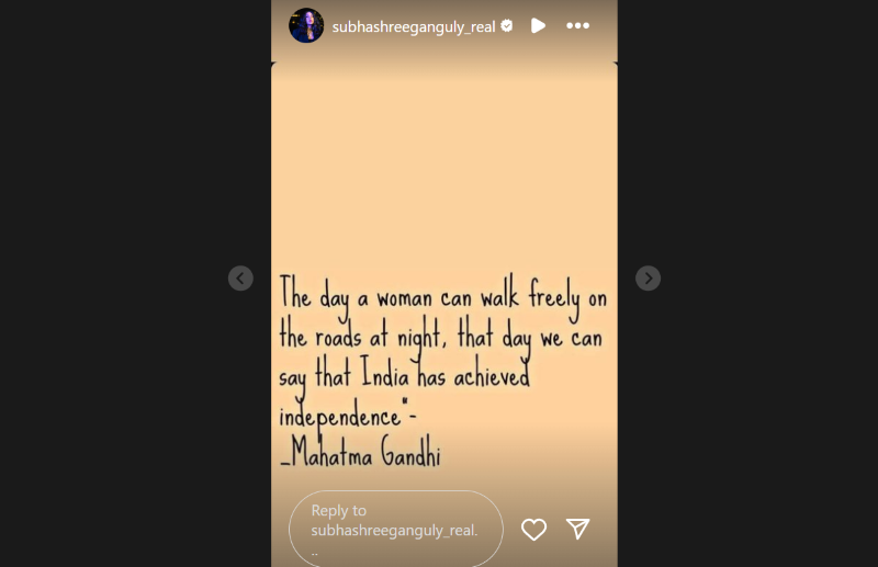 Actress Subhashree Ganguly and her husband, director Raj Chakraborty, quoted Mahatma Gandhi in condemning the incident.
