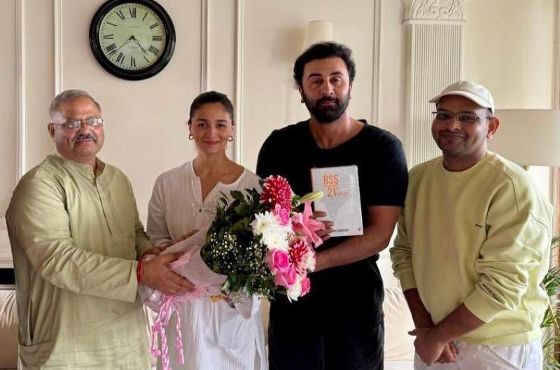 RANBIR KAPOOR, ALIA BHATT RECEIVE INVITE FOR SHRI RAM JANMABHOOMI MANDIR CEREMONY… Shri #SunilAmbekar [Akhil Bharatiya Prachar Pramukh of #RSS], Shri #AjayMudpe [Prant Prachar Pramukh, #RSS #Konkan] and producer #MahaveerJain met #AliaBhatt and #RanbirKapoor today and invited… pic.twitter.com/Vcf7HKxIXT
