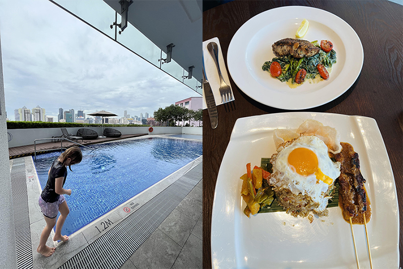The Garden Grille is where you eat during your stay. By the poolside on the 8th floor, Hilton Garden Inn's  contemporary restaurant serves cooked-to-order breakfast of local and international favourites. As you watch the heritage shophouse rooftops and the modern skyline, enjoy your meal by a simple no frills swimming pool. You can unwind here at the end of the day with a sundowner.