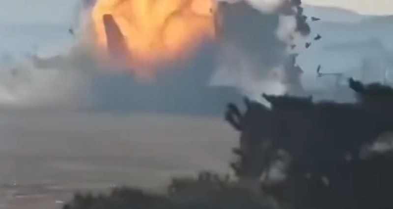 The airport erupted into flames and visuals showed black smoke rising above the crash site.
