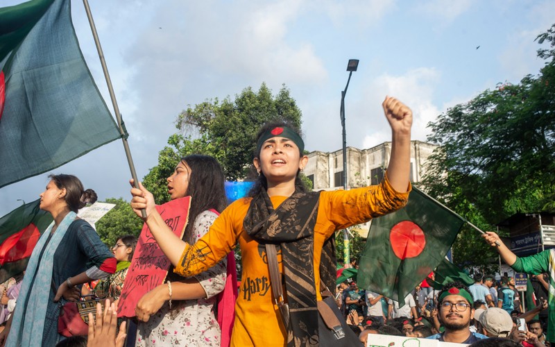 Bangladeshi women protesting in Dhaka during the July-August Uprising in 2024. Photo Courtesy: Unsplash