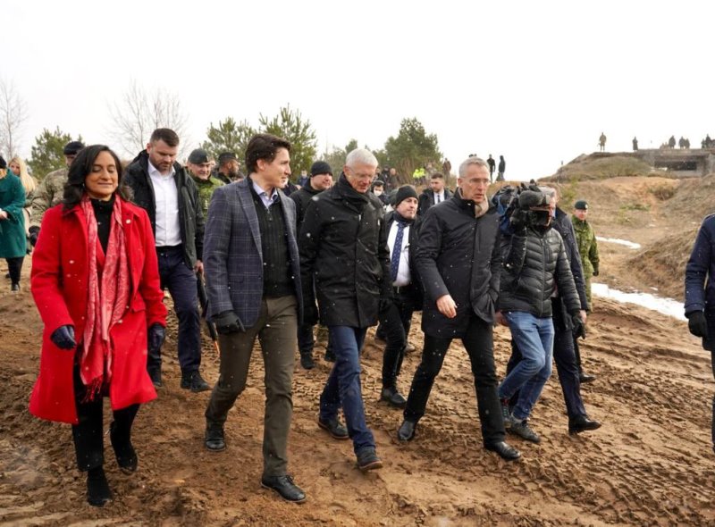 Trudeau was joined with Spanish Prime Minister Pedro Sanchez and Latvian Prime Minister Arturs Krišjānis Kariņš as they visited the troops on alliance's base and training range at Adazi, outside Latvia's capital Riga and met with NATO Sec. Gen. Jens Stoltenberg to discuss how allies can prevent the war of Russian invasion of Ukraine from spreading.
