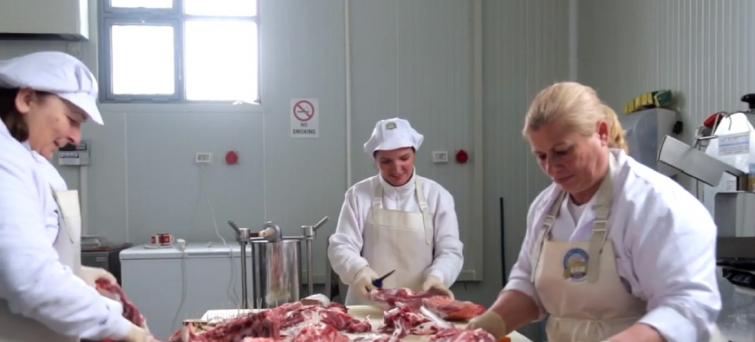 Serbs and Albanian women working together in a butchery in Kosovo.