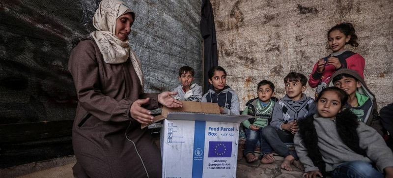 A family in Gaza receives a box of food. Photo Courtesy: WFP/Ali Jadallah