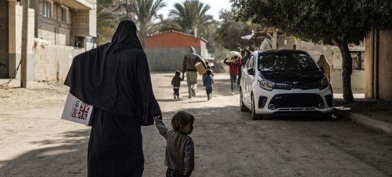 A woman carries children's winter clothes in Der Al Balah Gaza. . Photo Courtesy: UNICEF/Mohammed Nateel