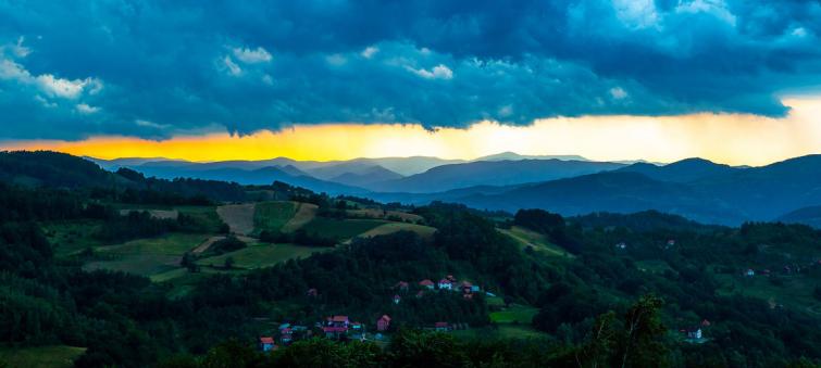 Spomen park Kadinjaca, Serbia, during a storm.