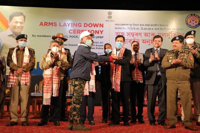 The insurgents had laid down their weapons before Assam Chief Minister Sarbananda Sonowal, Assam DGP Bhaskar Jyoti Mahanta and other senior officials of Assam government, Assam police and Indian army at an arm laying down function held at Srimanta Sankardev Kalakshetra in Guwahati.
