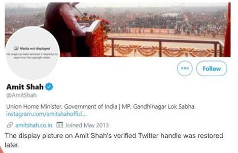 However, Twitter has said the removal of Amit Shah's profile picture from his account was due to an "inadvertent error".