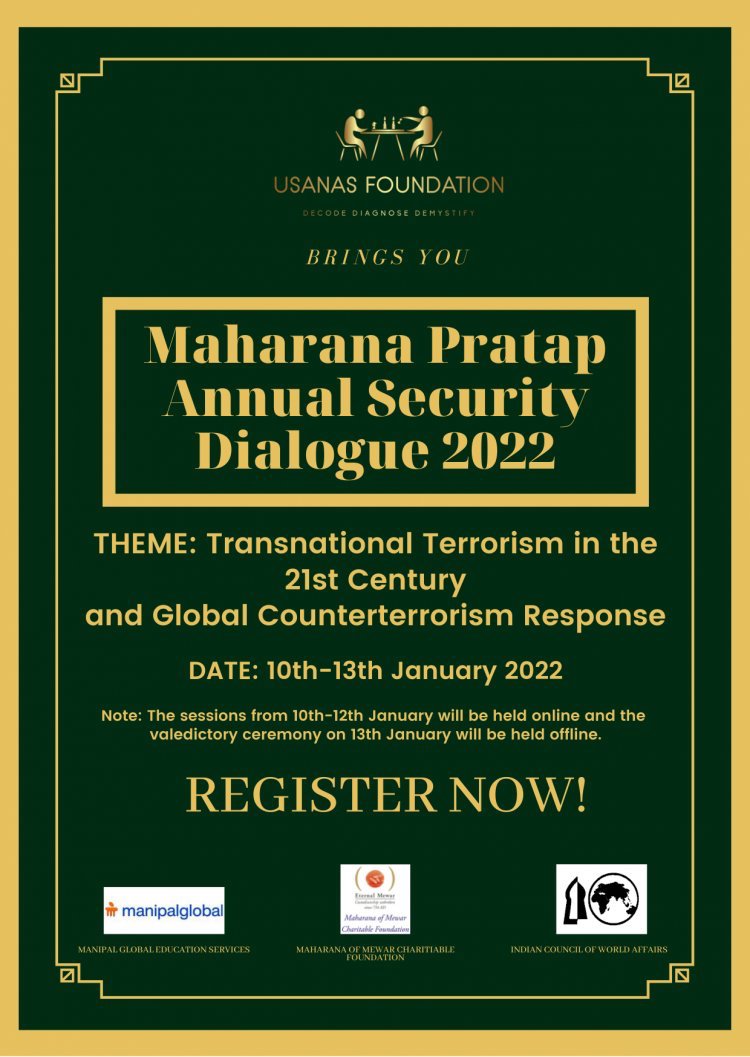Udaipur-based Usanas Foundation will be hosting the Maharana Pratap Annual Security Dialogue on 'Transnational Terrorism in the 21st Century and Global Counterterrorism Response' on Jan 10-13, 2022.