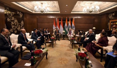 The Prime Minister, Narendra Modi with the Prime Minister of the Kingdom of Cambodia, Samdech Akka Moha Sena Padei Techo Hun Sen, at Hyderabad House, in New Delhi on January 27, 2018.