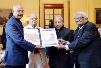 The President, Ram Nath Kovind with the artistes who had participated in the 69th Republic Day Parade, at Rashtrapati Bhavan, in New Delhi on January 27, 2018. The Union Minister for Tribal Affairs, Jual Oram and the Ministers of State for Tribal Affairs, Sudarshan Bhagat and Jaswantsinh Sumanbhai Bhabhor are also seen.
