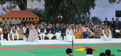 The President, Ram Nath Kovind, the Vice President, M. Venkaiah Naidu, the Prime Minister, Narendra Modi and other dignitaries attend the Sarva Dharma Prarthana Sabha, at the Samadhi of Mahatma Gandhi on the occasion of Martyr’s Day, at Rajghat, in Delhi on January 30, 2018.