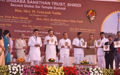 The Vice President, M. Venkaiah Naidu addressing the gathering after laying the foundation stone for the International Exhibition-cum-Convention Center and Integrated Transit Corridor Development Project, at Pragati Maidan, in New Delhi on December 22, 2017. The Union Minister for Commerce, Suresh Prabhu, the Minister of State for Consumer Affairs, Food & Public Distribution and Commerce & Industry, C.R. Chaudhary and the Commerce Secretary, Rita A. Teaotia are also seen