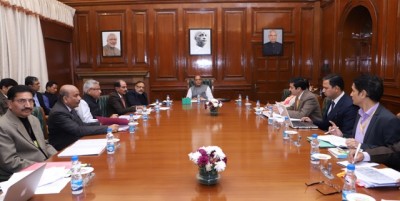The Union Minister for Finance and Corporate Affairs, Arun Jaitley chairing the Pre-Budget Consultative meeting with the (Banks & Financial Institutions) groups in connection with the forthcoming Union Budget 2018-19, in New Delhi on December 15, 2017. The Minister of State for Finance and Shipping, P. Radhakrishnan, the Minister of State for Finance, Shiv Pratap Shukla, the Finance Secretary, Dr. Hasmukh Adhia and other dignitaries are also seen.