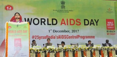 The Minister of State for Health & Family Welfare, Anupriya Patel inaugurating an exhibition, at the celebration to mark the “World AIDS Day”, in New Delhi on December 01, 2017. The Secretary, Ministry of Health & Family Welfare, Preeti Sudan and other dignitaries are also seen.