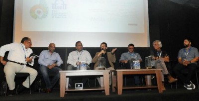 The Indian Panorama Directors - Feature films:TAKE OFF (Malayalam) Director-Mahesh Narayanan, MAACHER JHOL (Bengal), Director- Pratim D. Gupta, REDU (Marathi) Director- Sagar Chaya Vanjari, Non Feature films, AMMA MERI, Director-Tarun Jain, NAME PLACE ANIMAL THINGS Director- Nithin R., at a press conference, during the 48th International Film Festival of India (IFFI-2017), in Panaji, Goa on November 27, 2017.