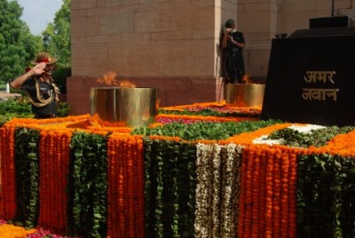 General Sher Mohammad Karimi, Chief of General Staff, Afghan National Army Saluting at Amar Jawan Jyoti, India Gate on 11 Dec 14