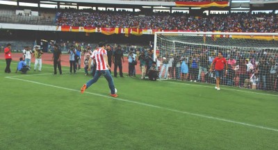 With the historic first game of the Indian Super League just a day away, host team Atletico de Kolkata is brimming with confidence. Players interacted with the media and later participated in a practice session in the Salt Lake Stadium on Friday (Oct 10, 2014). Images by Avishek Mitra/IBNS