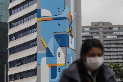 SAO PAOLO, Aug. 21 (Xinhua) -- A woman passes by a graffiti work of NaLata International Festival of Urban Art amid the COVID-19 outbreak in Sao Paulo, Brazil, Aug. 20, 2020.