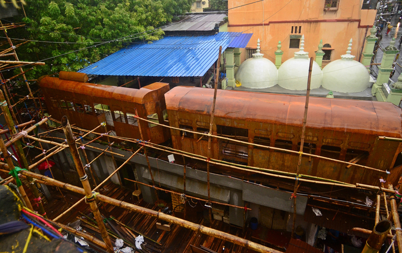 Bhowanipur 75 Palli is set to commemorate its diamond jubilee year with a grand celebration of Durga Puja, showcasing a vibrant theme titled "Tobuo Tomar Kache Aamar Hridoy". The theme, crafted by renowned artist Shivshankar Das, will feature a mandap that embodies a rustic aesthetic, utilizing eco-friendly materials such as iron and asbestos sheets. It will be complemented by the intricate idol design by world-renowned artist Sanatan Dinda, ensuring a blend of tradition and modernity.Images by Avishek Mitra/IBNS