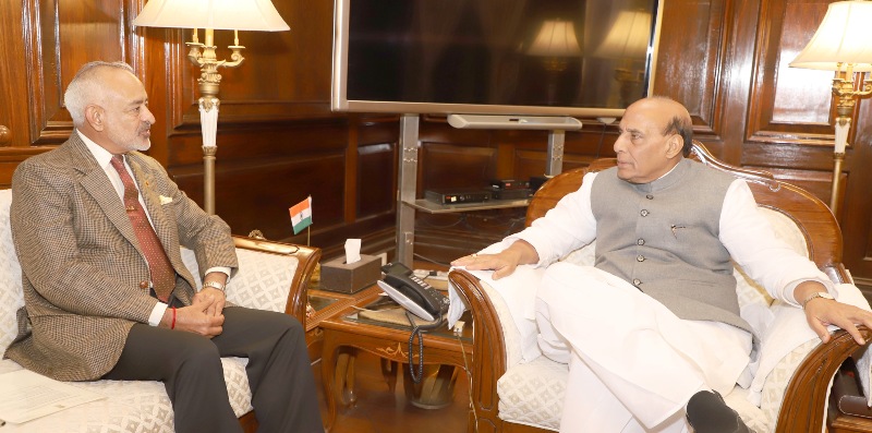 The Lieutenant Governor of Andaman & Nicobar Islands, Admiral D.K. Joshi calling on the Union Home Minister, Rajnath Singh, in New Delhi on January 10, 2018.