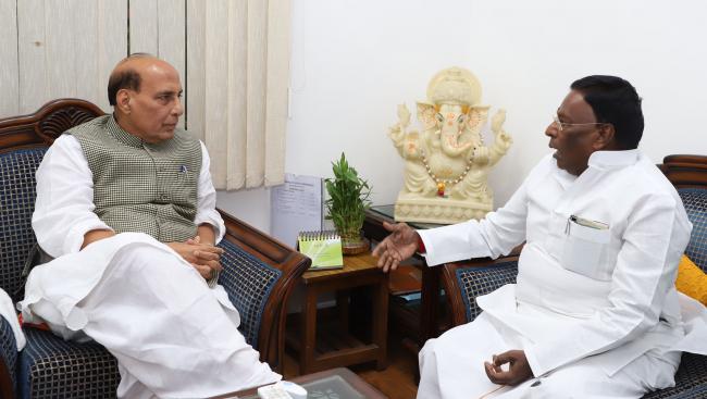 The Chief Minister of Puducherry V. Narayanasamy calling on the Union Home Minister, Rajnath Singh, in New Delhi on November 04, 2017.