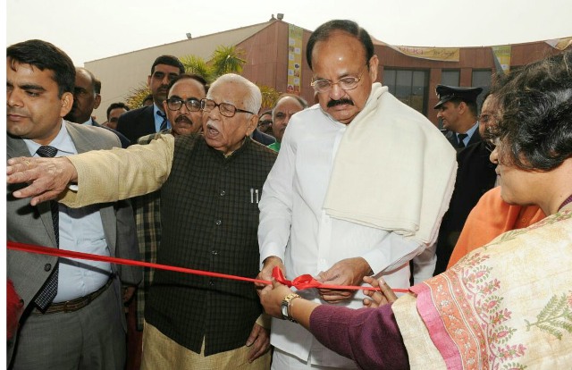 The Vice President, M. Venkaiah Naidu inaugurating the Exhibition on Uttar Pradesh Diwas, in Lucknow, Uttar Pradesh on January 24, 2018. The Governor of Uttar Pradesh, Ram Naik and other dignitaries are also seen.