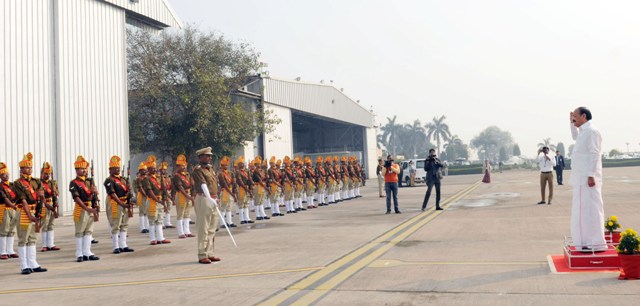 The Vice President, M. Venkaiah Naidu inspecting the Guard-of-Honour, on his arrival, in Lucknow, Uttar Pradesh on January 24, 2018.