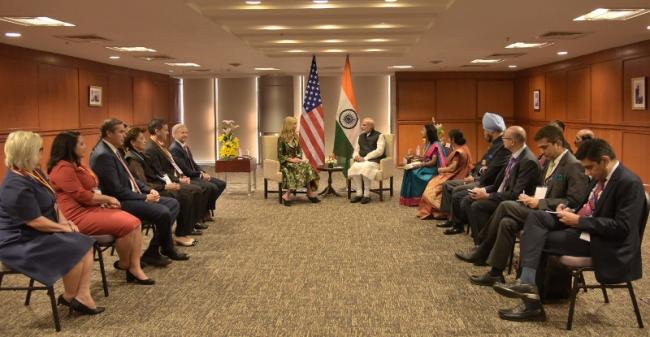 The Prime Minister, Narendra Modi meeting the Advisor to the President of United States, Ivanka Trump, on the sidelines of the Global Entrepreneurship Summit-2017, in Hyderabad on November 28, 2017.