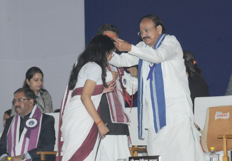 The Vice President, M. Venkaiah Naidu presenting the medals to meritorious students, during the 34th Convocation of the Banasthali Vidyapeeth, in Tonk district of Rajasthan on January 07, 2018.