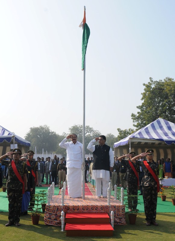 The Vice President, M. Venkaiah Naidu taking the salute of the ceremonial parade on his arrival, at Banasthali Vidyapeeth, in Tonk district of Rajasthan on January 07, 2018.