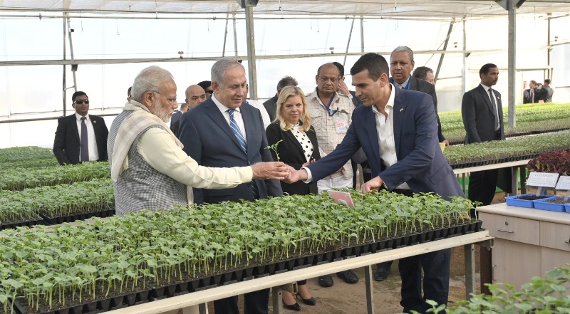 The Prime Minister, Narendra Modi and the Prime Minister of Israel, Benjamin Netanyahu, at the Centre of Excellence for Vegetables, at Vadrad, in Gujarat on January 17, 2018.